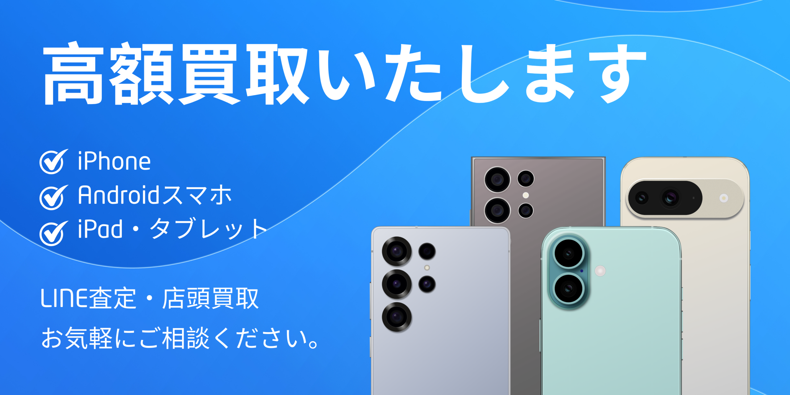 また、中古スマホの販売だけでなく、iPadやAndroidタブレット、モバイルルーターなども取り扱いしています。さらにスマホ買取にも力を入れており、LINE査定で簡単に買取金額を確認できるので、忙しい方でもスムーズにご利用いただけます。